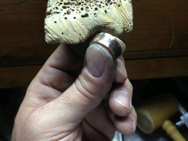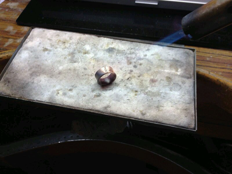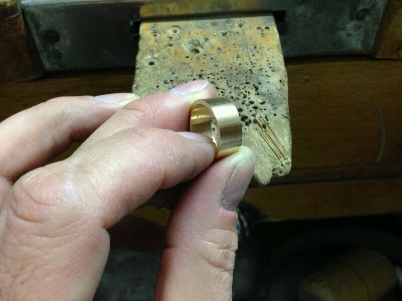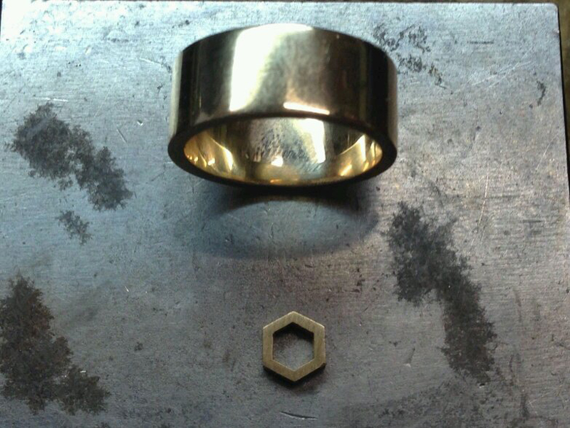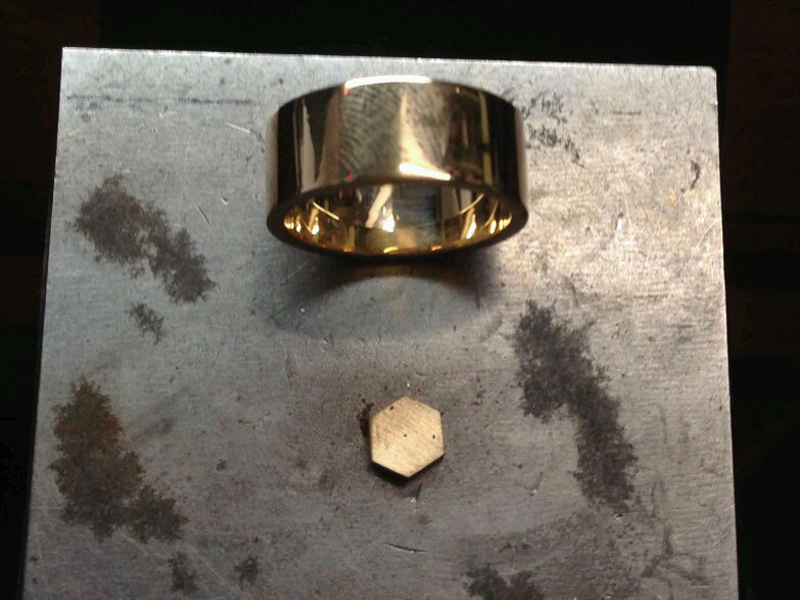 En este apartado os vamos a mostrar cómo elaboramos nuestras piezas de una manera exclusiva y artesanal, desde el laminado, soldadura, limado, engaste, pulido, etc. Son fotos de nuestro taller. En este caso, el proceso de fabricación de un encargo muy especial que ha viajado al otro lado "del charco". Todo realizado con gran detalle y esmero para conseguir que cada pieza sea única y absolutamente personal.